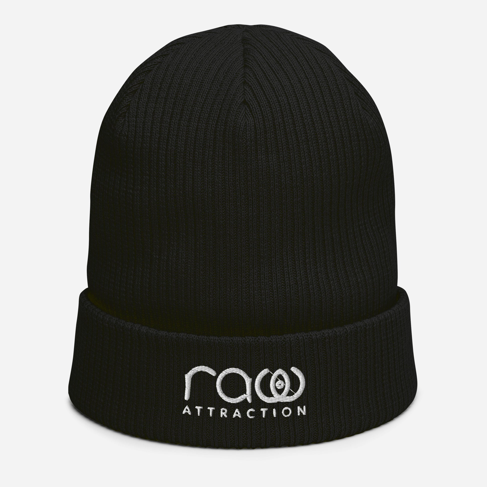 100% Organic Cotton Ribbed Raw Attraction Embroidered Beanie